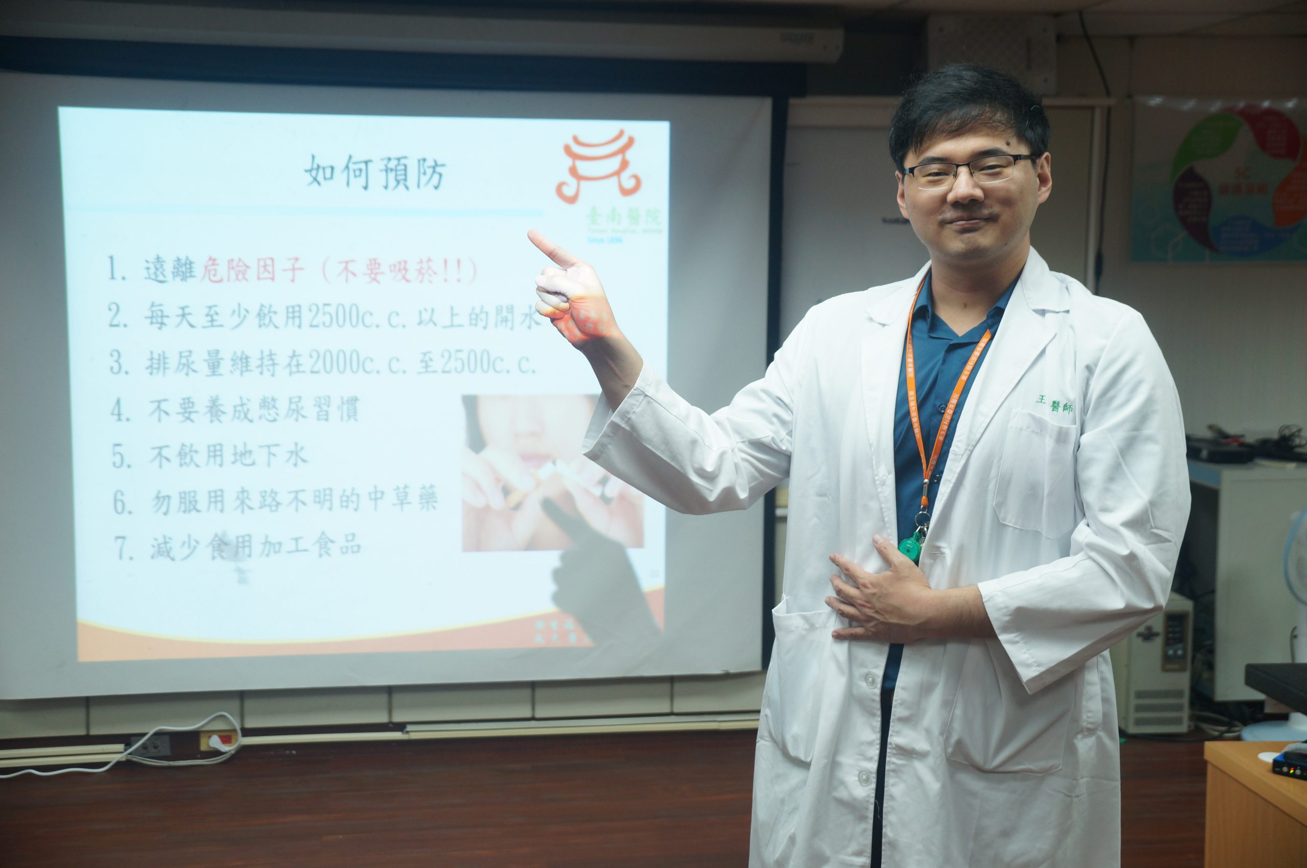 王彰德醫師也提醒,每天至少飲用2500c.c.以上的開水,排尿量維持在2000c.c.至2500c.c.,不要養成憋尿習慣,不抽菸、不飲用地下水、勿服用來路不明的中草藥,以降低罹癌機率。小小的留意、一個簡單的檢查,即可避免遺憾的發生,大家絕不可忽略它的存在,一旦發現問題應即向專業醫師尋求協助。